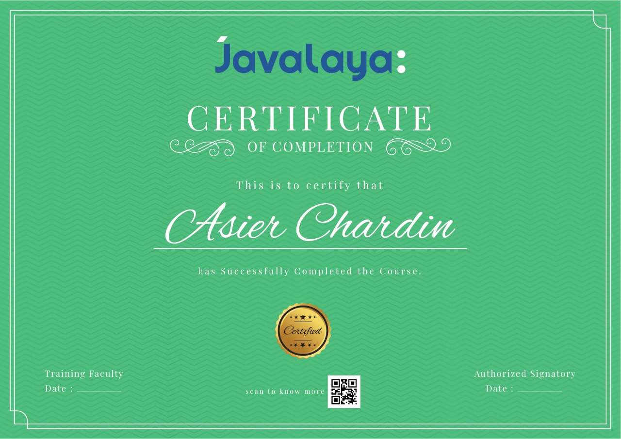 This certification from Javalaya Technologies validates the candidate’s knowledge and skills in software development and testing. It demonstrates their ability to work with modern tools, apply industry practices, and build real-world solutions. The certification reflects a strong foundation for a successful IT career in today’s competitive tech landscape.
